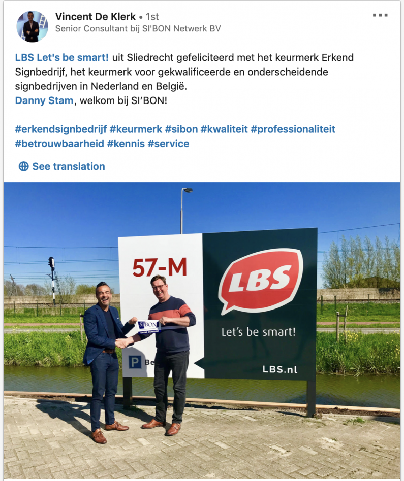 Het heeft een eigenwijze puntige vorm, is van emaille gemaakt en LBS heeft het met trots mogen ontvangen. Het keurmerk “Erkend Signbedrijf” van branche-organisatie SI’BON is sinds deze week in ons bezit.