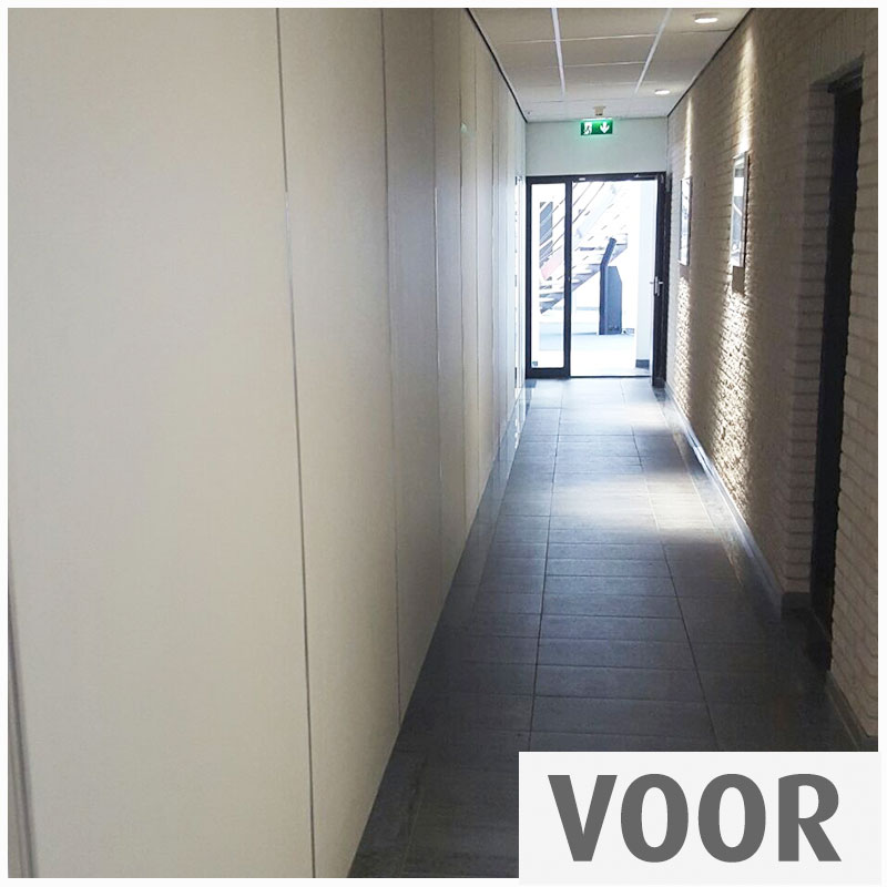 De gang ruimtelijker en inspirerender maken, passend bij Van Domburg Partners.
