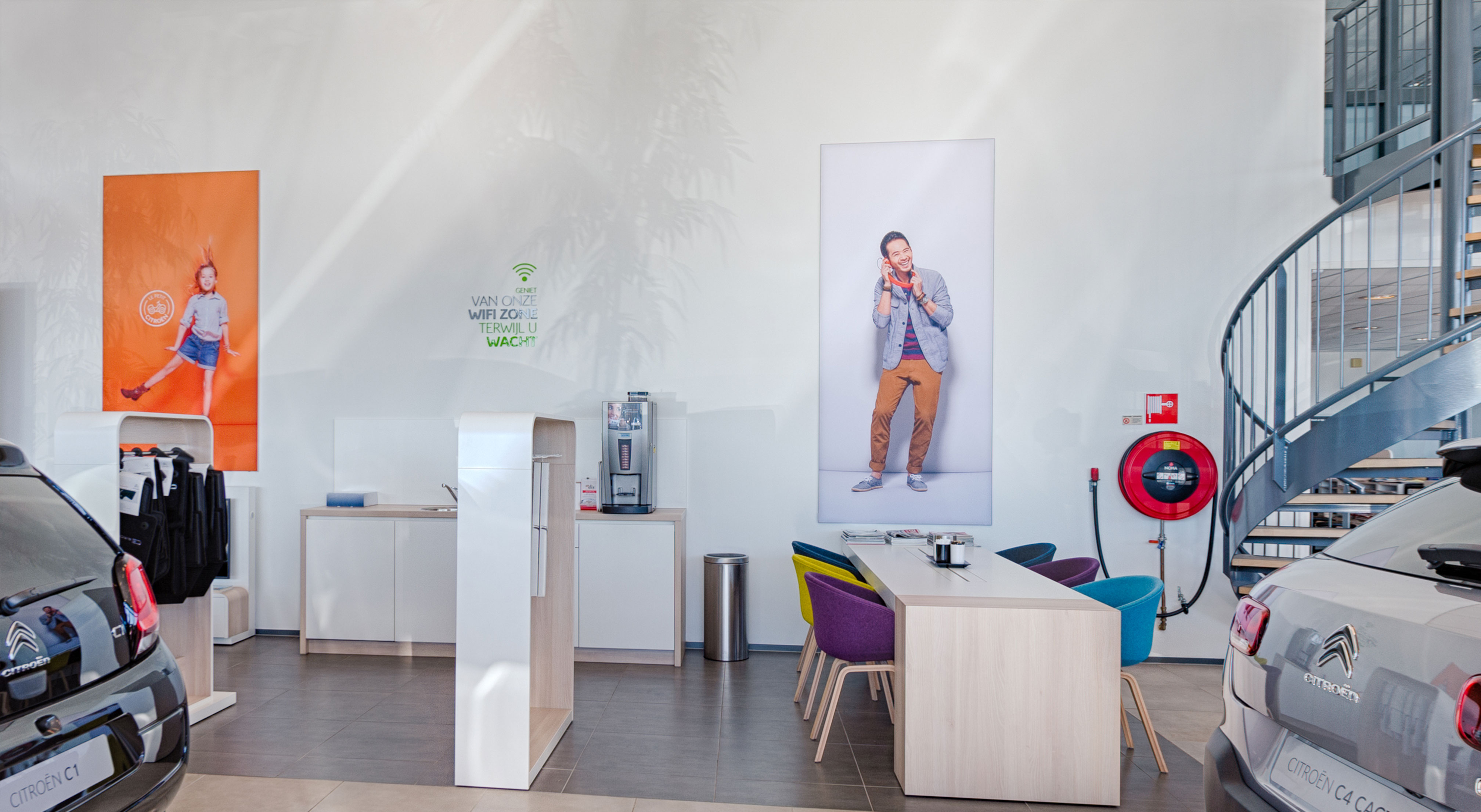 De showroom is ontworpen om de klankverwachtingen gelijk te overtreffen en door bewust mensen in de visuals te laten zien, ervaar je dat de klant centraal staat voor Citroën.